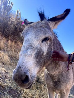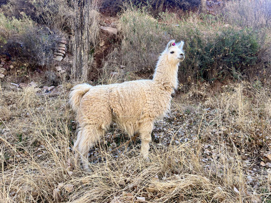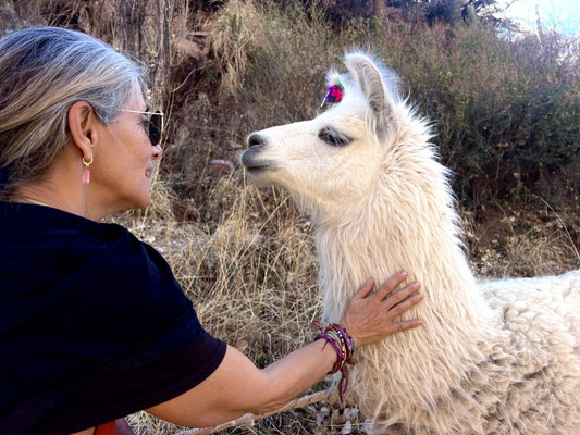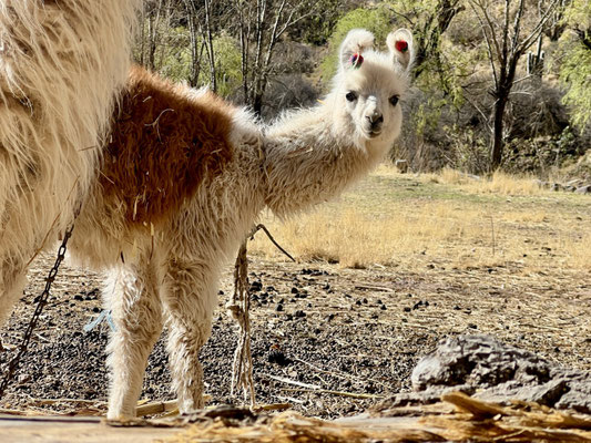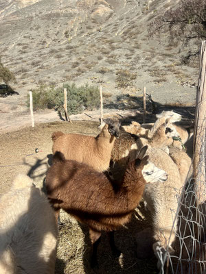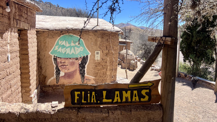 Bei Clara und Héctor sowie ihren Lamas fühlen wir uns sofort willkommen. Gemeinsam mit ihrer Nichte Gabi wandern wir zu Petroglyphen in einem abgelegenen Tal. Gabi teilt ihr reiches Wissen über Heilpflanzen – inklusive einer heiteren Geschichte zum «Kräuter-Viagra». Zurück am Hof erleben wir die Lamas hautnah, eines sucht gezielt meine Nähe. Ein unvergesslicher Moment. Clara und Héctor leben fast autark, mit Ackerbau und Lama-Wolle, und verdienen mit Touren ein Zubrot. Schön, so eine indigene Grossfamilie direkt unterstützen zu können.