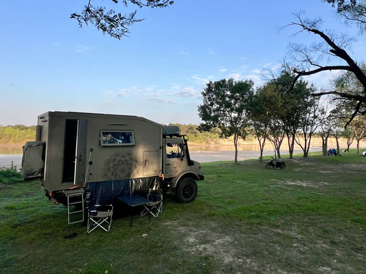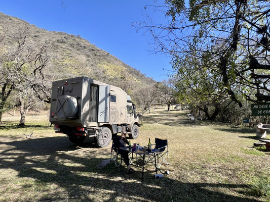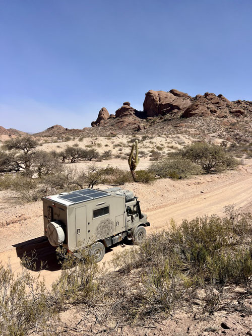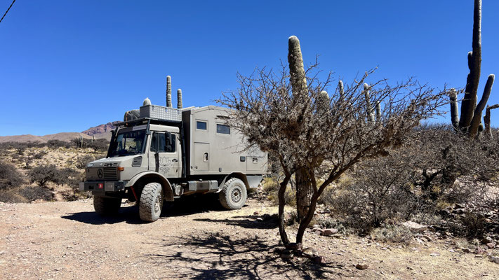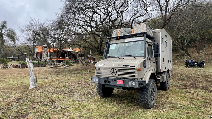 Ein besonderes Erlebnis ist unser Treffen mit Cristina, der Mutter von Renata, die wir in São Paulo getroffen haben. Herzlich empfängt sie uns, ein Stück Zuhause mitten in Argentinien. Als Yogalehrerin schenkt sie uns eine wunderbare Hatha-Stunde, bevor wir gemeinsam frühstücken gehen. Wir lehnen ihr Zimmerangebot dankend ab – im Unimog schlafen wir immer am besten. Danach heisst es: Vorräte auffüllen, Wasser und Diesel tanken, Bargeld via Western Union besorgen. Nach mehr als fünf Jahren unterwegs wissen wir, wie man sich vorbereitet. Denn was vor uns liegt, erfordert Selbstverantwortung – und eine gute Portion Routine.
