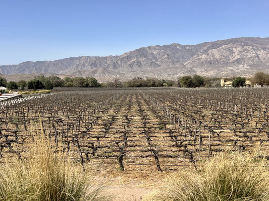 Schon bei unserer Ankunft fällt uns auf, dass die Rebstöcke in Cafayate unterschiedlich erzogen sind: die einen tief und knorrig, die anderen hochgezogen. Dahinter steckt kein Zufall, sondern eine Mischung aus Tradition und Technik. Die alten, niedrigen Reben tragen zwar weniger, doch ihre Trauben sind konzentrierter – die Basis für hochwertigen Wein.