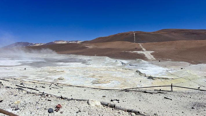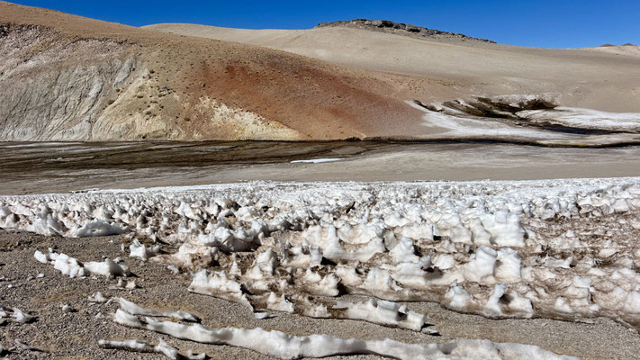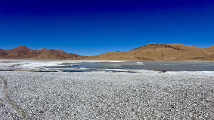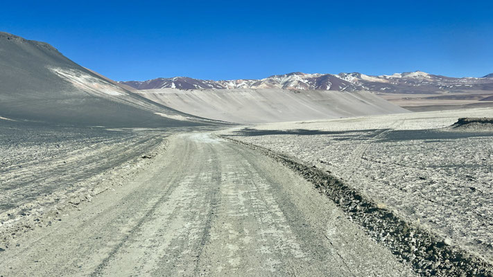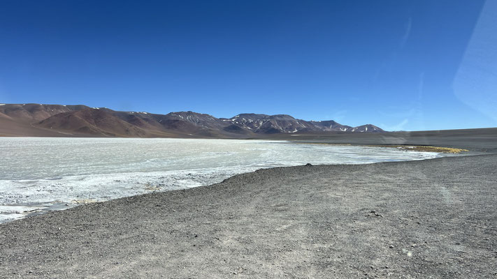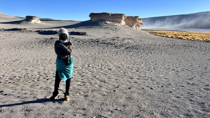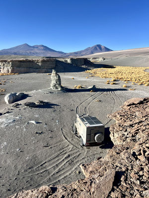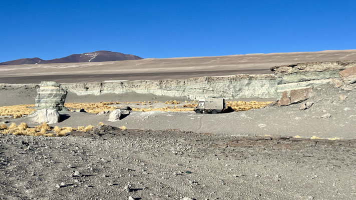 Nun beginnt ein längerer Abschnitt auf 3500 bis 4500 Metern. Das Altiplano erstreckt sich von Nordargentinien über Bolivien bis nach Chile und Peru. Typisch: weite Ebenen, Salzseen, Vulkane, extreme Trockenheit. Tagsüber brennt die Sonne, nachts wird es eisig kalt. Ein Rhythmus, an den wir uns offenbar gewöhnen müssen.