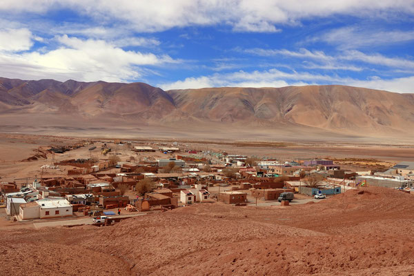 Nach Tagen zwischen Salzseen, Sandstürmen und einsamen Schotterpisten wirkt Tolar Grande fast wie eine Oase. Das Dorf selbst ist schlicht, doch die roten Felsen rundherum leuchten in der Sonne. Natürlich muss einer der Hügel erklommen werden – die Aussicht auf die schneebedeckten Andengipfel entschädigt für die Mühe.