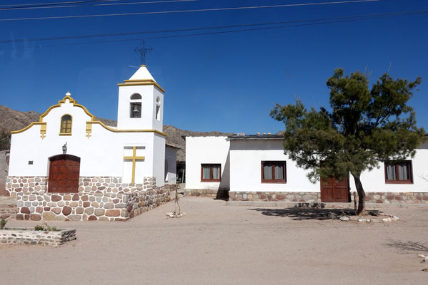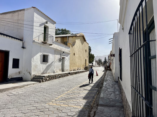 Unsere erste Station auf dem Weg hinauf in die Puna ist Cachi, eines der schönsten Dörfer im Calchaquí-Tal. Die Anreise führt uns über den Cuesta del Obispo Pass auf 3450 Meter. Die Strasse windet sich in endlosen Serpentinen nach oben und bietet immer wieder spektakuläre Ausblicke, etwa bei der Passhöhe Piedra del Molino. Im windigen Hochlanddeckten wir uns mit Salami und etwas überteuerter Quinoa ein – eine lokale Stärkung mit regionalem Charakter.