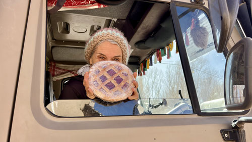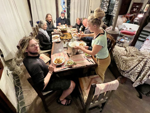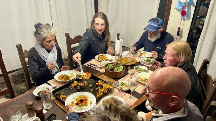 Noch einmal schauen wir bei Cristina vorbei, kaufen Vorräte, Frostschutz und destilliertes Wasser. Auch für Frank, den charmanten Campingplatz-Besitzer von San Lorenzo, bringen wir gleich etwas mit. Wir verbringen dort einen geselligen Abend mit Reisenden und Franks Tieren, geniessen kulinarische Verwöhn Momente und Reisegeschichten. Zum Frühstück überrascht uns Hanna, seine Workaway-Hilfe, mit Sauerteigbrot – samt Starter, den ich mitnehme. Mein erstes eigenes Sauertbrot wird bald gebacken.